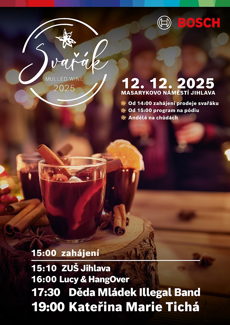 připomínáme, že tento pátek (12.12.2025) se na Masarykově náměstí v Jihlavě od 14:00h koná Bosch Svařák.